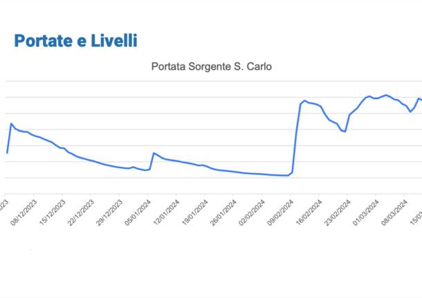 Nei grafici che vedete di seguito, sono indicati gli effetti delle piogge di febbraio su sorgenti e pozzi gestiti da Alfa, la società pubblica che si occupa del Servizio Idrico Integrato in provincia di Varese.